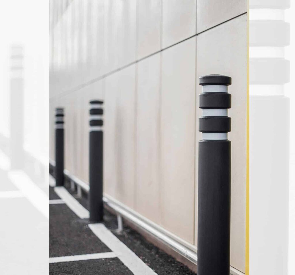 - Self-adhesive reflective strips can be added to the neck of the bollard if required
