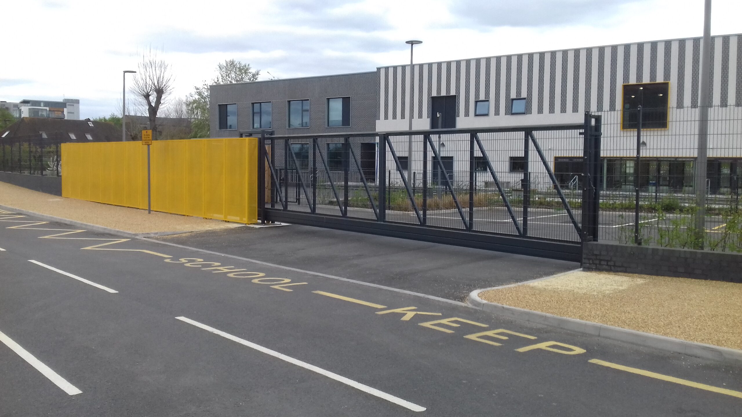 Another new-build project was for the Skinners’ Academy in Hackney. We supplied and installed ornamental railings along the roadside boundary and high-security mesh panel Pro-sure 358 fencing at the rear of the site. There were also two powered and four manual swing gates, and a key part of the project was the customised cantilevered sliding gates that control access through two openings 8m wide. The client was delighted with all aspects of our work and the products installed.